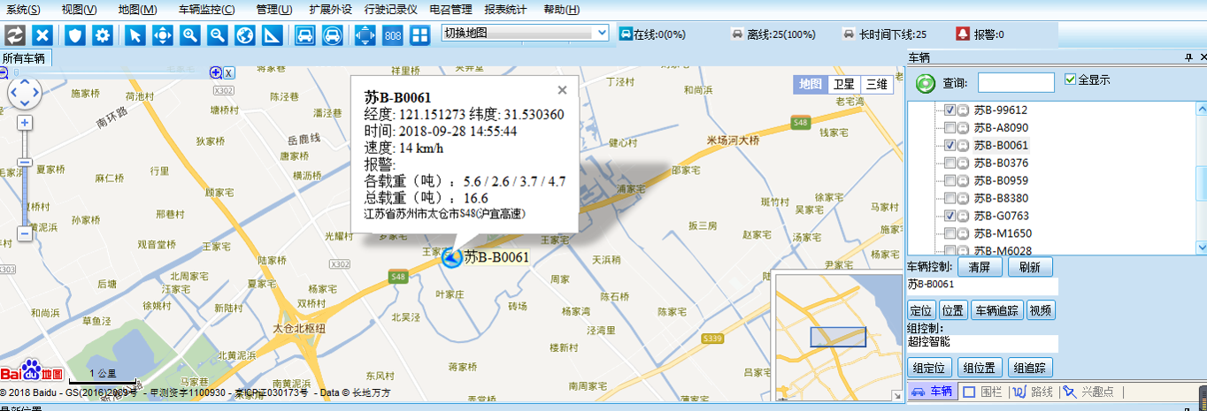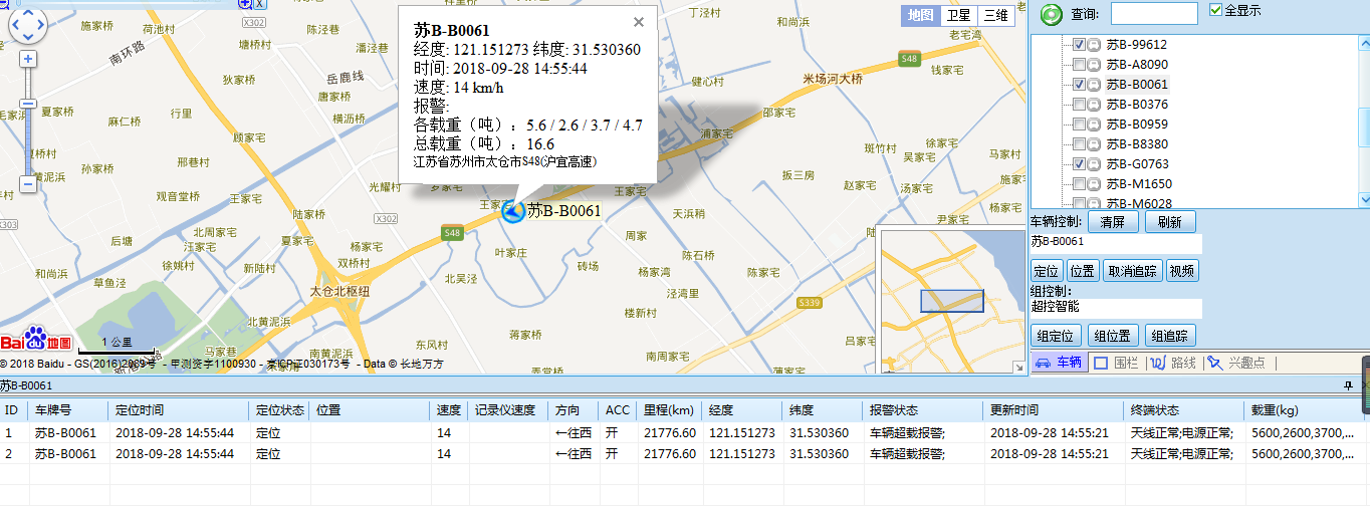 车辆监控:通过车牌号\车主手机号\车辆终端编号等任何信息可以快速检索锁定车辆位置、运行速度、载重情况,并在地图上调出实时位置,并持续跟踪。